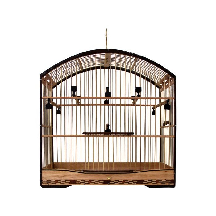 Gaiola especial com seis poleiros fabricados em cortiça, feita em eucalipto