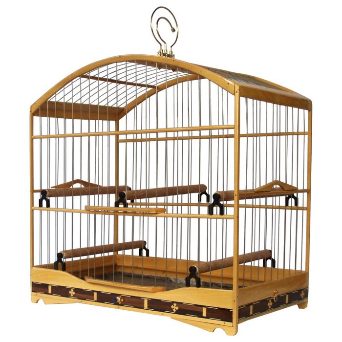 Gaiola com cinco poleiros de cortiça, feita em Marfim de ótima qualidade
