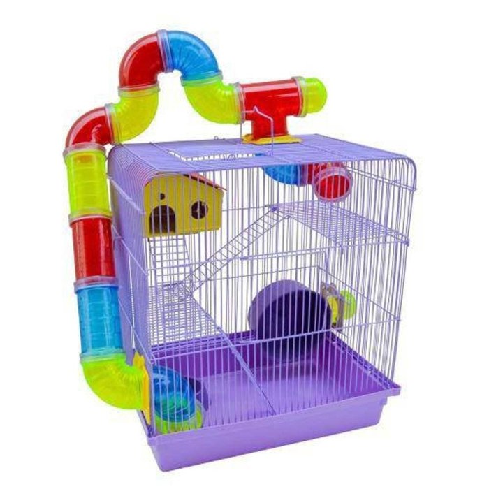 Gaiola Hamster 3 Andares Labirinto Tubos Coloridos Completa Lilas Colorido
