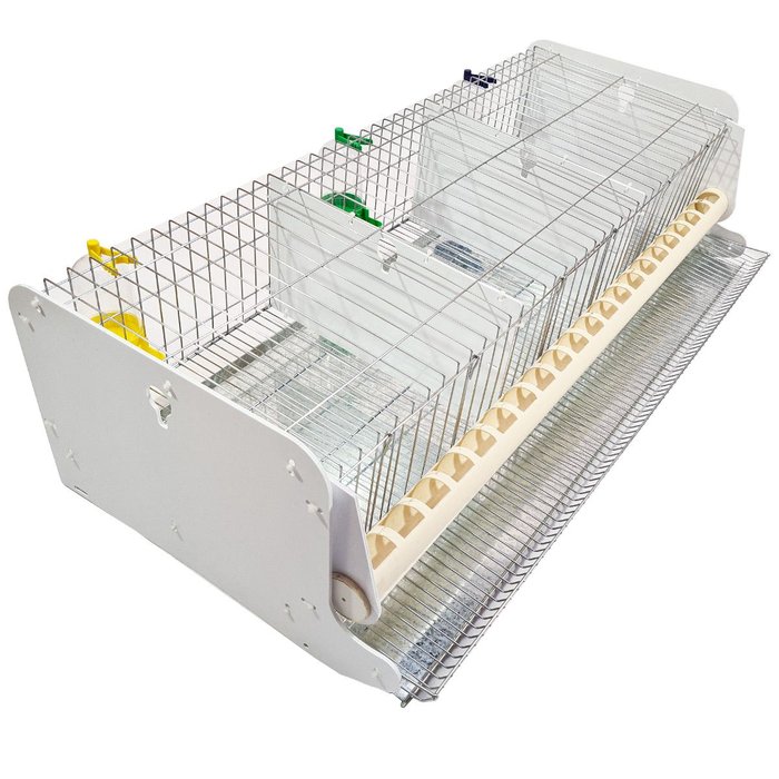São três compartimentos com a Capacidade para 30 codorna comum ou 18 codorna gigante
