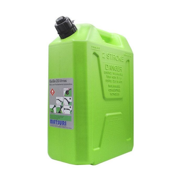 Galão de Combustível 20 Litros Reservatório de combustível resistente fabricado em polietileno de altíssima densidade e longa durabilidade. Trava para abertura da tampa. Sistema de bloqueio automático no bico , facilitando quando do abastecimento e segurança quando não esta sendo usado. Bico longo que facilita no abastecimento. Tampa no bico que mantém limpo sem poeira. Atende às normas EPA / CARB / AS / NZS 2906: 2001. Medidas: 27,6 x 19 x 33,0 cm