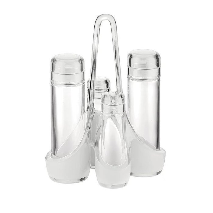 Este galheteiro coleção Vintage Two Tone faz uma mescla de acrílicos transparentes bicolores e vidro, para criar uma mistura perfeita de emoção e funcionalidade aos olhos e ao uso apresentando cores cores claras por fora que enfatizam seu conteúdo.