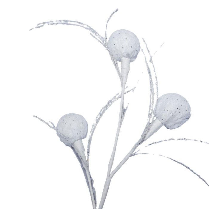 Galho Decorativo Branco com Pom Pom 65cm Única
