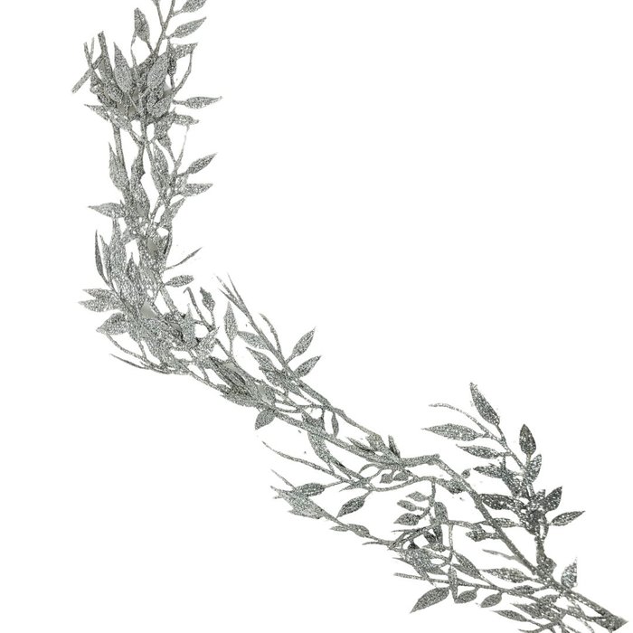 Galho Folhagem Ramificado Glitter Prata Natal 1,75 Metros - Art Christmas