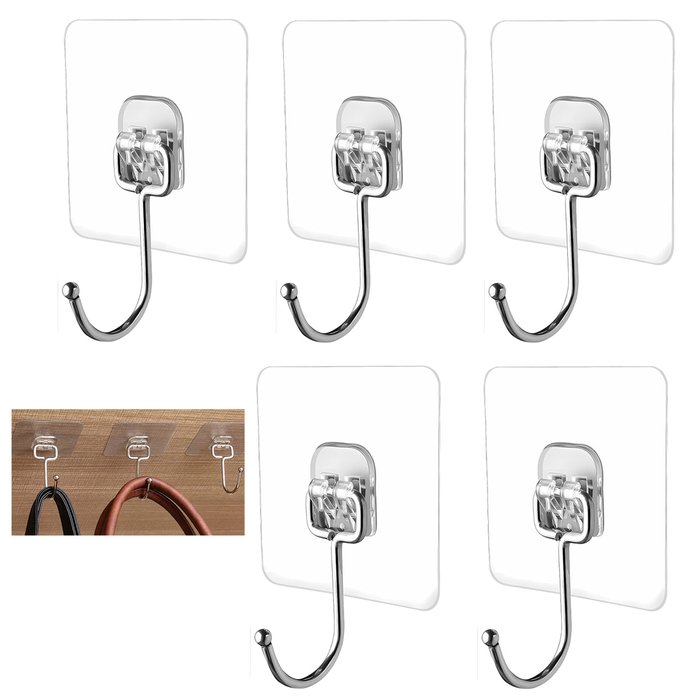 Esses ganchos são feitos de metal resistente e PVC possui longa vida útil. Não tóxico, sem perfuração, sem danos, transparente, removível e com excelente viscosidade.