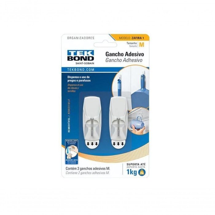 Gancho Adesivo Zafira 1 Tekbond com 2.un - Tamanho M
