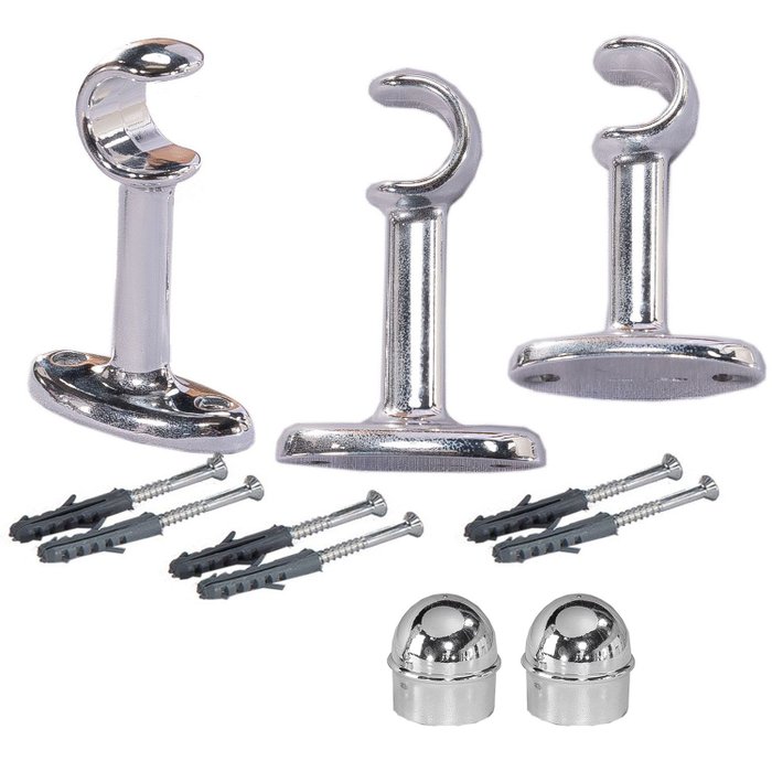 | Itens Inclusos | 03 Suporte de Cortina de Parede varão simples: 19mm em Alumínio 02 Ponteiras em ABS Polilpropileno Cromada 06 Parafusos 06 Buchas |