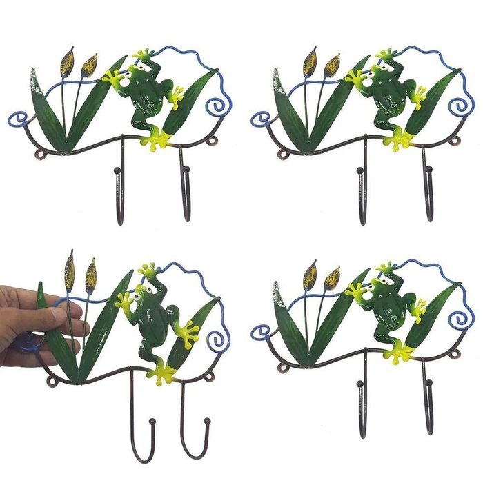 4 Unidades do Gancho de ferro duplo decorativo sapo para pendurar chapéus, bolsas, etc