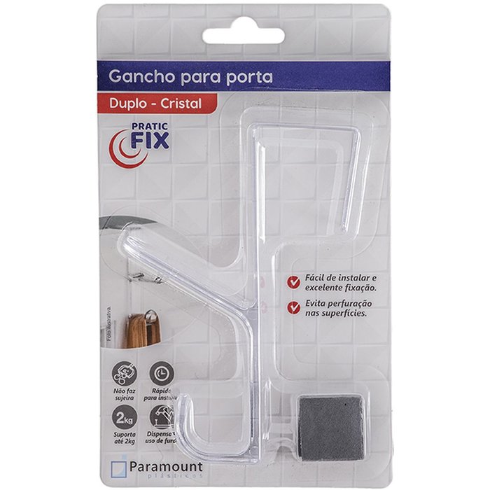 Gancho Plástico Duplo P/ Porta Cristal C/1 Uni