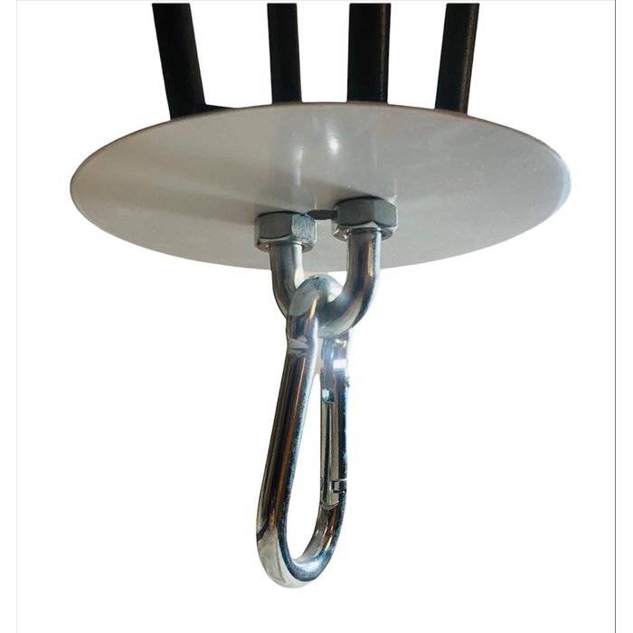 ACOMPANHA 4 CHUMBADORES PARABOLTS (MECÂNICO/METÁLICO), MOSQUETÃO, GRAMPO EM U DE AÇO, E ACABAMENTO DE TETO.
