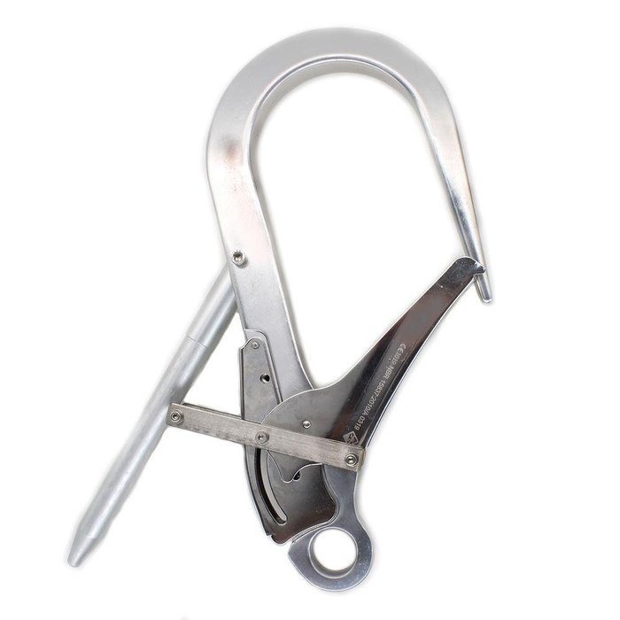 Gancho para vara de manobra em alumínio (mosquetão), com olhal independente, abertura 110mm. Este equipamento é utilizado em conjunto com a vara de manobra, para sistemas de ancoragem de difícil acesso. Sua carga de ruptura é de 22KN (2200 Kg). Não acompanha vara de manobra, apenas conector. Atenção utilizado apenas para varas de manobra da marca Top, tendo em vista que a conexão pode mudar de marca para marca.Disponível na cor prata ou de acordo com a disponibilidade...
