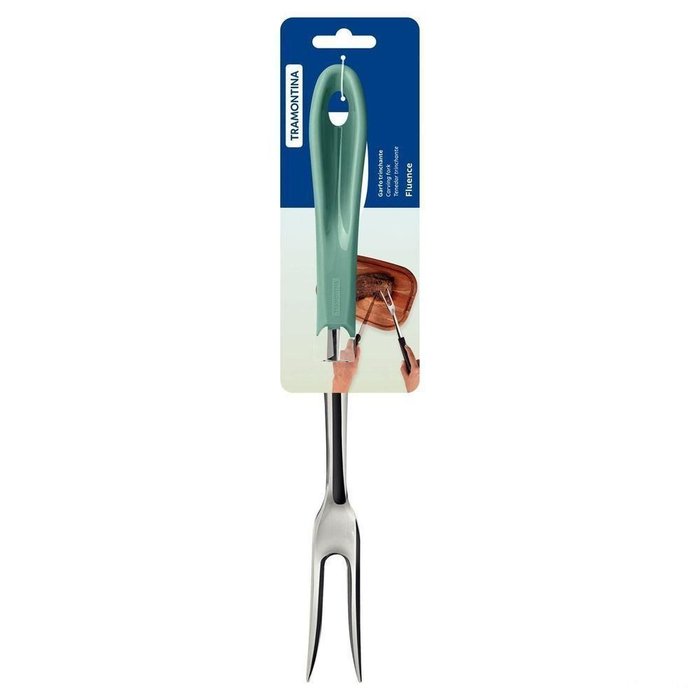 Garfo Trinchante Tramontina Fluence com Lâmina em Aço Inox e Cabo em Polipropileno MentaO garfo trinchante Tramontina Fluence com lâmina em aço inox e cabo em polipropileno menta vai conceder muita praticidade e estilo na hora de servir a carne nas suas refeições, seja assada no forno, na churrasqueira ou feita na panela. Produzido com lâmina em aço inox e cabo de polipropileno, ele proporciona maior resistência durante o uso. Ele ainda conta com furo passante que possibilita ser pendurado na sua cozinha e pode ir à máquina de lavar louças, facilitando seu dia a dia! Garfo trinchante com lâmina de aço inox que proporciona resistência durante o uso. Cabo de polipropileno com furo passante possibilitando que seja pendurado na sua cozinha. Pode ir à máquina de lavar louças facilitando seu dia a dia.Cuidados com o produtoAntes da primeira utilização, lave bem a peça e seque-a. Produto perfurante: tenha cuidado ao manusear e mantenha fora do alcance das crianças. Para maior durabilidade do produto recomenda-se secar bem antes de guardar, mesmo após lavagem em máquina. Para descarte do produto e embalagem siga as orientações de reciclagem vigentes.Garantia90 dias para vícios ou defeitos de fabricação.