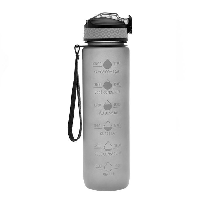 Garrafa 1L Com Canudo Com Marcador De Água Cinza em Policabornato Lyor