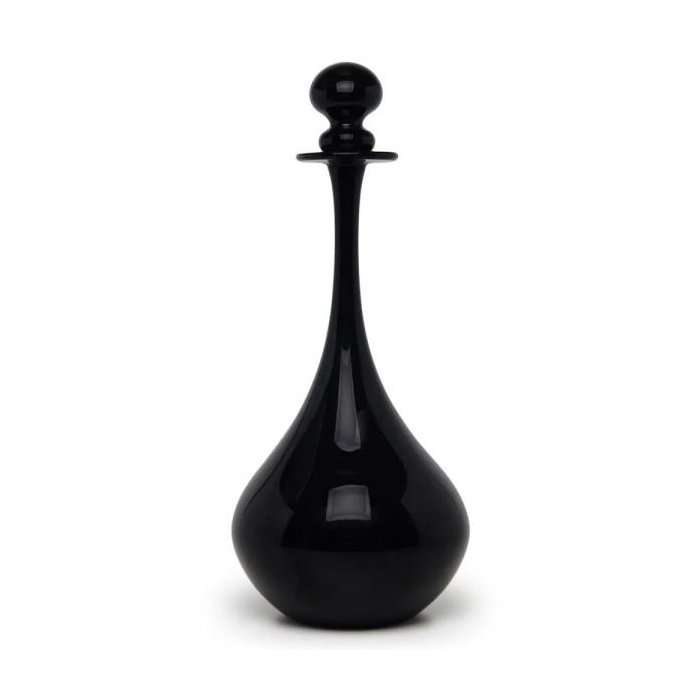Garrafa decorativa modelo 425 em vidro Preto Leitoso. Peça com desenho exclusivo da Cristais Cá d'Oro, produzido de forma 100% artesanal. Seu processo de produção segue os princípios trazidos pela família Seguso da Ilha de Murano, em Veneza, onde esta tradicional família ligada a arte do vidro tem suas origens, há mais de 700 anos. Sua aparência opaca salienta a força da cor e confere solidez visual à peça, ao mesmo tempo que mantém a delicadeza e brilho inerente ao vidro. Por ser uma peça artística e artesanal, podem ocorrer pequenas variações em suas características de cores e camadas em relação à imagem.