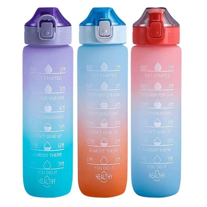 Garrafa de Água 900ml Colorida com Marcador de Horas Adesivo