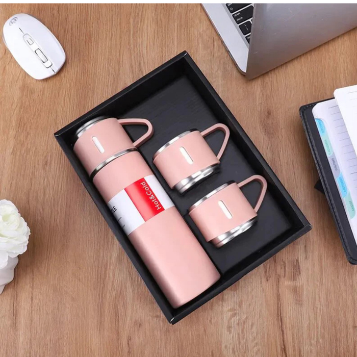 Garrafa de Água Café Térmica Squeeze com 2 Canecas 500 Ml - Rose