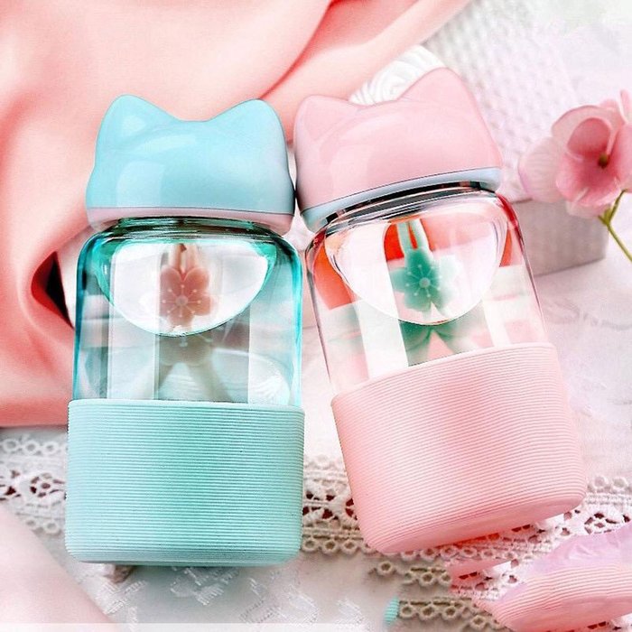 Garrafa de Vidro com capa Gato Gatinho Nekko 300mL SAKURA SHOP Rosa