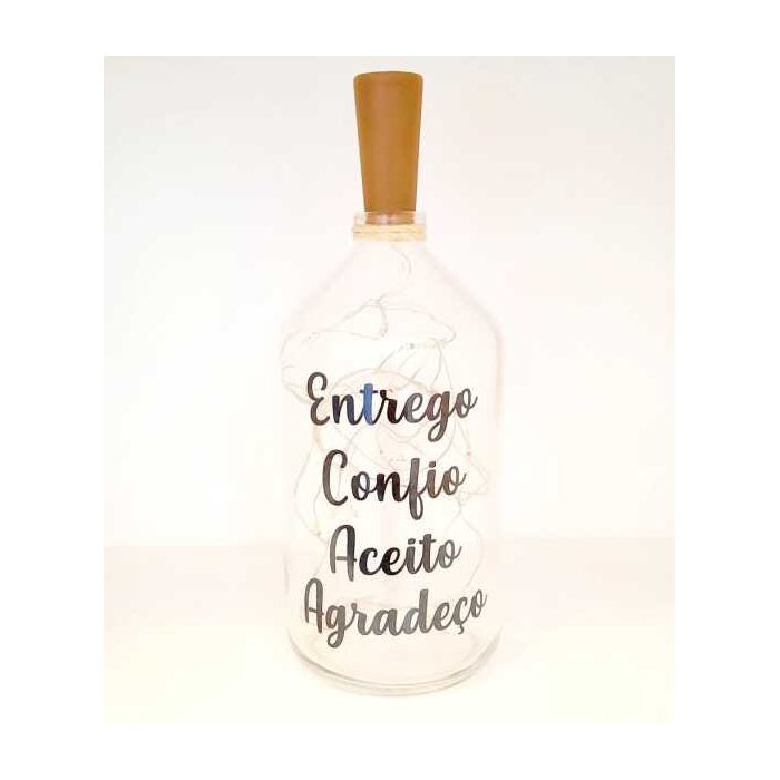 Garrafa de Vidro com Luminária LED - Entrego, confio, aceito, agradeço'