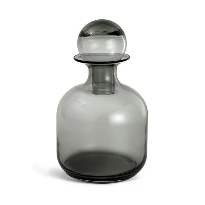 um design esférico, esta garrafa é confeccionada em vidro em tonalidade cinza, oferecendo