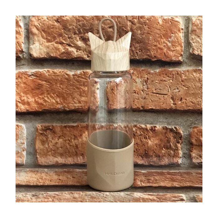 Linda Garrafa de vidro com capa de silicone, sendo a tampa em formato de orelha de raposa