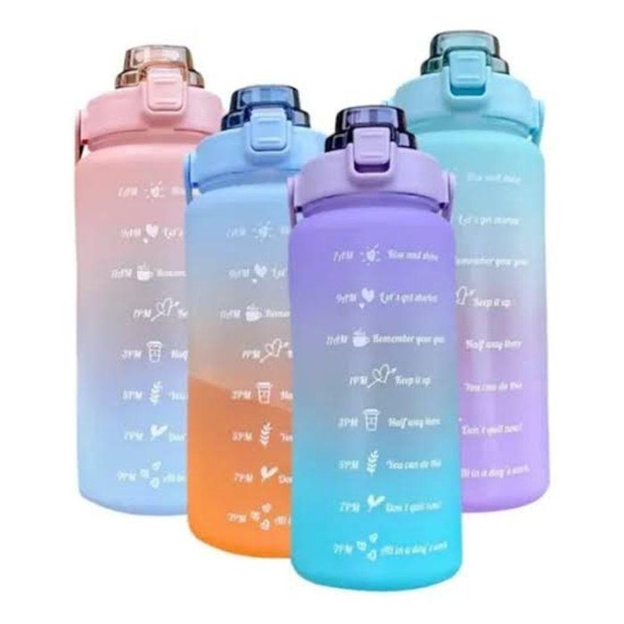 Produto enviado em cor Sortida, sendo modelo feminino. Garrafa Colorida feminina contendo aproximadamente 2 litros de volume. Essa garrafa além de ser super linda e prática, vai ajudar com que você mantenha o foco nos objetivos de atividades físicas e hidratação, pois ela contém aspectos motivacionais que ajudam com que você beba a água ao longo do dia. Essa versão de garrafa é muito prática para levar à academia, no serviço ou deixar em casa, para que possa ir medindo a quantidade de água a ser consumida. Por ter um aspecto visual muito bonito, a garrafa também é um item que vai fazer sucesso em todos lugares que você estiver. É um charme e beleza garantidos! Itens Inclusos: - 1 Garrafa Colorida de Cor Sortida