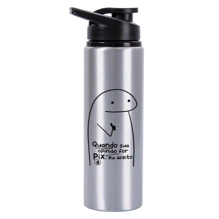 Garrafa Flork Bento Quando Sua Opinião For Pix Eu Agradeço 750 ML Prata