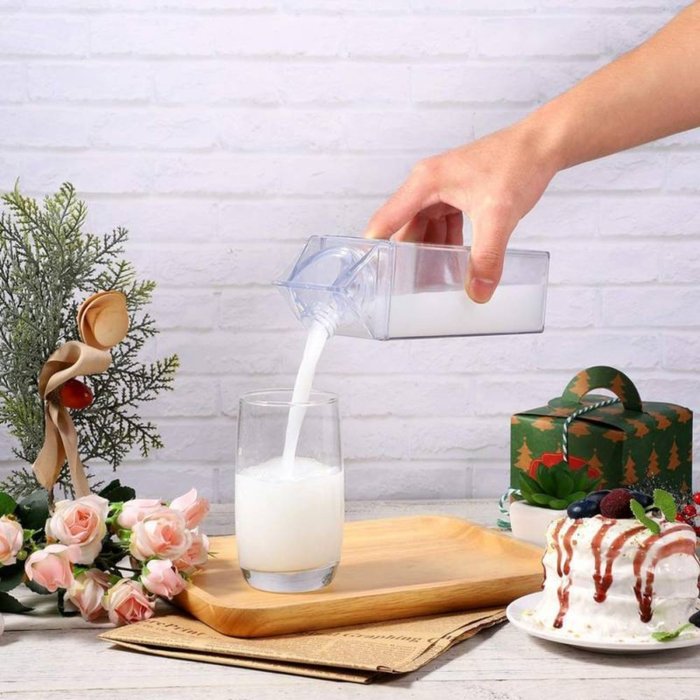 Garrafa Formato de Caixa de Leite em Acrílico 500ml transparente