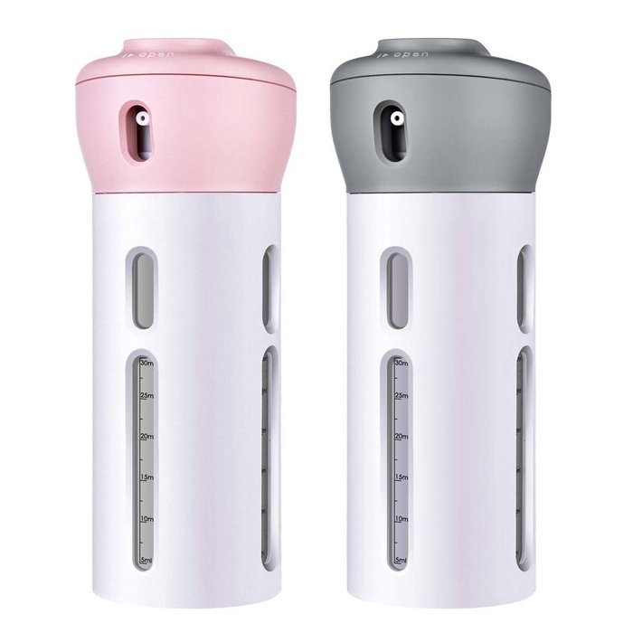 Garrafa Frasco Viagem 4 em 1 Shampoo Condicionador Alcool Gel Dispenser Art House Cinza ou Rosa