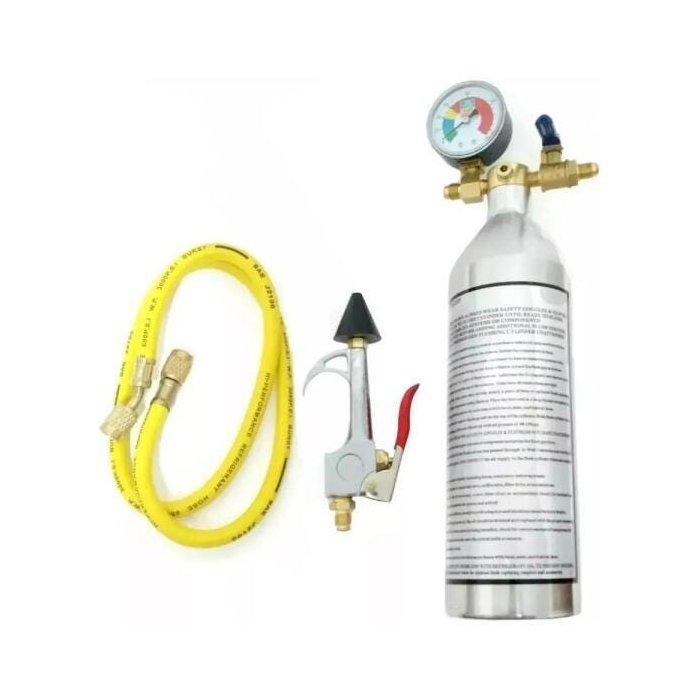 Excelente para remover excesso de óleo refrigerante e qualquer outro tipo de impurezas do sistema do A/C de modo rápido e eficiente.Entrada na parte superior para adicionar 141b e pressurização e na parte de baixo sairá o fluido para limpeza na pistola diretamente acoplada na tubulaçãoEntrada e saida do cilindro 1/4 acme (Padrão manifold)Pode pressurizar com o próprio fluido refrigerante ou nitrogênio, o cilindro suporta pressões até 150 psi.