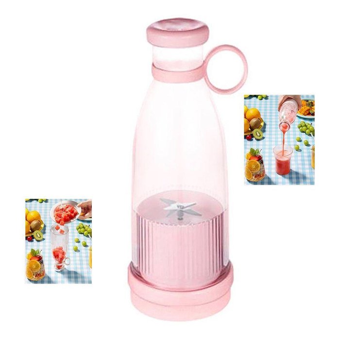 Garrafa Mixer é perfeita, para preparar sucos, shakes, de porção única, batidas, misturas de vegetais, o que você quiser. As frutas sao esmagadas de forma rápida e suave. A garrafa tem capacidade de 420ml.Com alça de silicone, fácil de transportar, ótimo para uso doméstico, piquenique, trabalho e viagens, desfrute de suco fresco a qualquer hora e em qualquer lugar.A garrafa é feita de poliprolileno, livre BPA, sem cheiro químico e fácil de lavar.Laminas em aço inox, potentes e rapidas para produzir seus sucos.Bateria embutida de grande capacidade de 1200mAh, pode produzir até 15 xícaras de suco depois de totalmente carregada.Botão on e off localizado na parte inferior da garrada mixerO PRODUTO NÃO ACOMPANHA ADAPTOR DE TOMADA, APENAS O CABO USBCaracteristicas:Garrafa Mixer