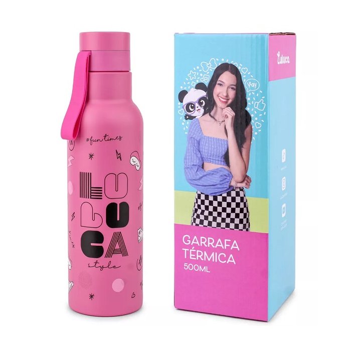 Garrafa Squeeze Termica Luluca Oficial 500ml Inox Rosa Lu1006 Rosa