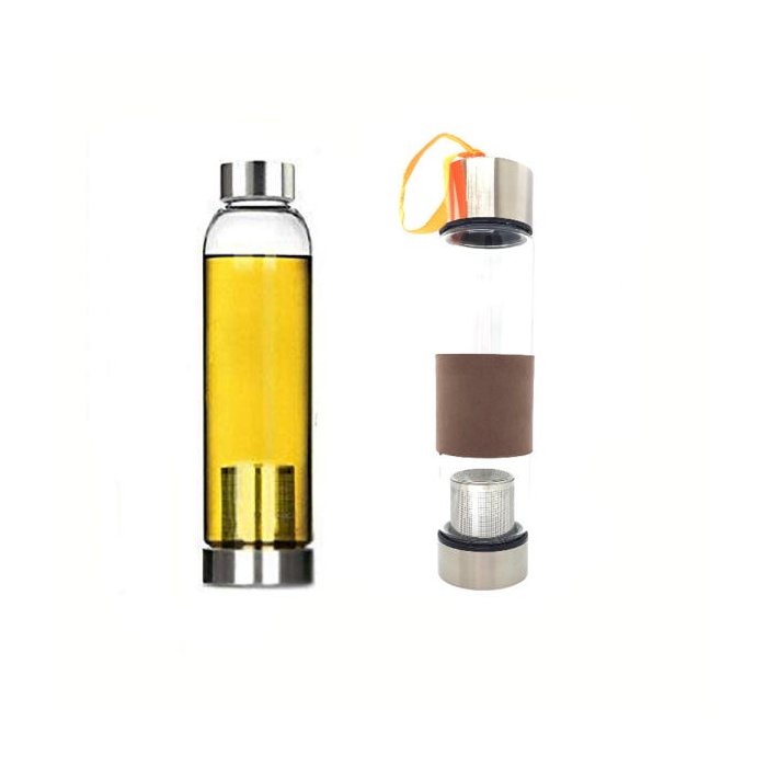 Garrafa Squeeze Vidro - Infusor Inox - Capa Marrom - 400ml