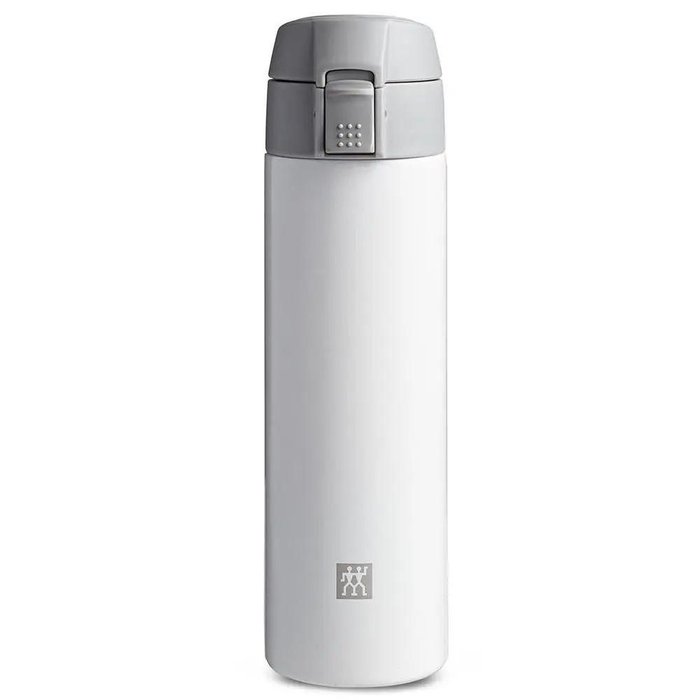 Garrafa Térmica 450ml Em Aço Inox E Silicone Branca E Cinza Thermos ZwillingGarrafa Térmica 450ml em Aço Inox e Silicone Branca e Cinza Thermos Zwilling O Grupo Zwilling, originário da Alemanha, é uma das marcas mais antigas do mundo. São 283 anos de tradição no ramo de acessórios premium para cozinha e cutelaria de alta qualidade. Os produtos em destaque são as facas, talheres, tesouras, produtos de beleza e utensílios domésticos, de panelas a acessórios de cozinha. Garrafa Térmica 450ml em Aço Inox e Silicone Branca e Cinza Thermos Zwilling É o recipiente perfeito para levar suas bebidas favoritas, quentes ou frias, para viagem. Sua tecnologia de parede dupla com isolamento a vácuo garante que seu conteúdo permaneça na temperatura ideal por mais tempo: seu café ou chá permanece quente por até 18 horas ou, se preferir, seu refresco gelado permanece frio. Conta também com uma tampa que se transformar numa caneca para você servir em qualquer lugar, além de ser à prova de vazamentos. Basta o apertar de um botão para abrir a trava de segurança e servir a bebida. A garrafa é feita em aço inoxidável de alta qualidade e conta com uma base antiderrapante, garantindo maior estabilidade. Design minimalista com qualidade premium, e o melhor: desmontável para uma limpeza mais rápida.