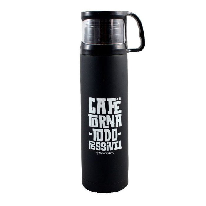 Garrafa Térmica 500 ml com Caneca - Café Torna Tudo Possível