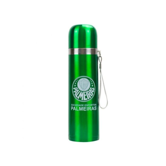 Garrafa térmica com 500 ml de capacidade na cor e estampa do escudo do Palmeiras.