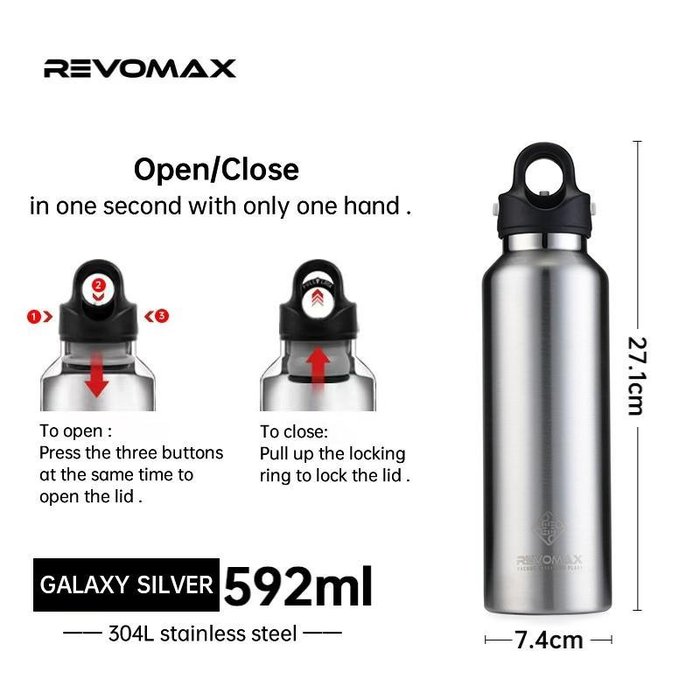 Garrafa térmica revomax 592ml isolamento térmico a vácuo em aço inoxidável