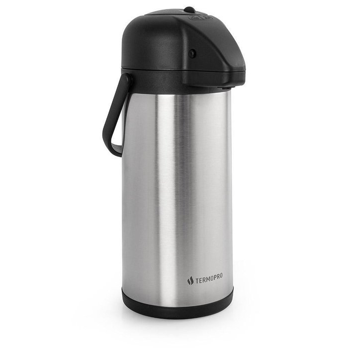 A Garrafa Térmica Aço Inox Pressão 3 L Termopro é produzida em inox de alta qualidade, conservando as bebidas frias por até 20h e as bebidas quentes por até 9h. Possui ampola feita com dupla camada em aço inox, vedações em silicone à prova de vazamento, acionamento por pressão, alça retrátil para transporte e base giratória.Recomendações: Quando for usar, retire a tampa e lave a parte interna com água morna. Durante a preparação de bebidas quentes, escalde a garrafa com água fervente, espere alguns minutos e descarte a água. No caso de bebidas frias, escalde a garrafa com água gelada. Coloque o líquido a ser mantido quente ou frio na garrafa, deixando 2 cm abaixo da tampa para conservação da temperatura por mais tempo. No caso do café, indica-se que a filtragem seja feita diretamente sobre a garrafa. Para o chá, o ideal é derramar a água quente na garrafa e usar somente o sache e não folhas de chá.