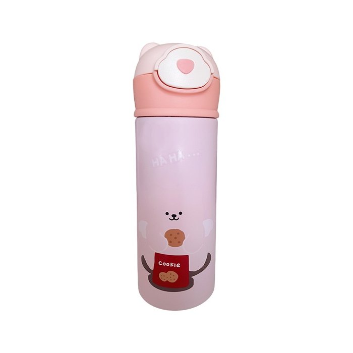 Garrafa Térmica de Ursinho Rosa Infantil 420ml com Trava
