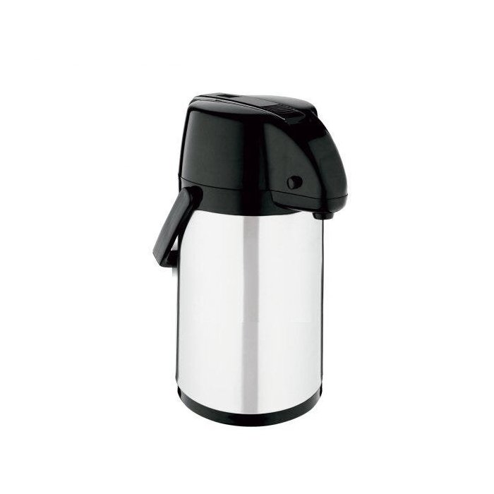 Cobertura em verniz: não suja e nem deixa marcas; facilidade para servir; sistema de servir por alavanca com alta eficiência, serve até 400ml por acionamento; garrafa com ampola de vidro, para líquidos quentes e frios; corpo externo em aço inoxidável, acabamento escovado, tampa em polipropileno (pp). Alça retrátil para transporte. Possui base giratória. Eficiência térmica até 8 horas para líquidos quentes, e até 12 horas para líquidos frios; disponíveis nos tamanhos de 2,5l, 1,9l e 1l.