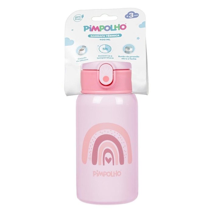 Garrafa Térmica Infantil 400 Ml Com Canudo Rosa Arco-iris Pimpolho