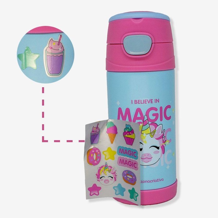 Garrafa Térmica Infantil Com Adesivo Unicórnio – Zonacriativa