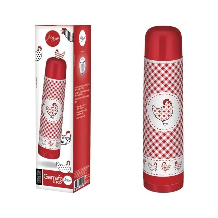 Garrafa Térmica Inox 750ML Galinha Carijó Vermelha-Art House
