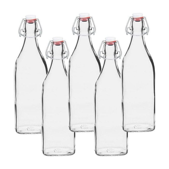 Kit 5 Garrafa de Vidro 1000ml Tampa Hermética Swing Bormioli Rocco