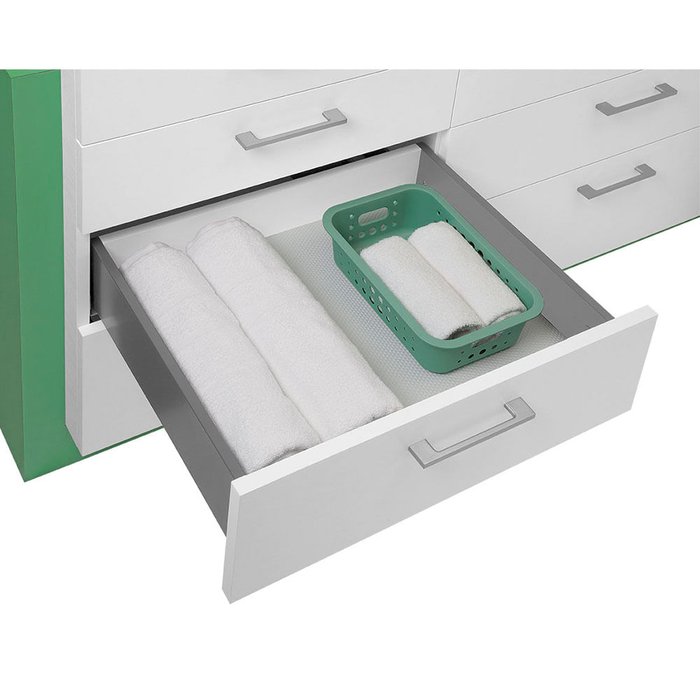 | Material | Perfis de aço laminado e componentes de plástico resistente com Acabamento cor cinza e corrediças em zinco eletrolítico azul. |