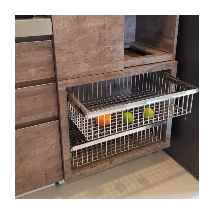 Gaveta Fruteira em Inox 304 para Embutir Armário 60x50x14 Cm