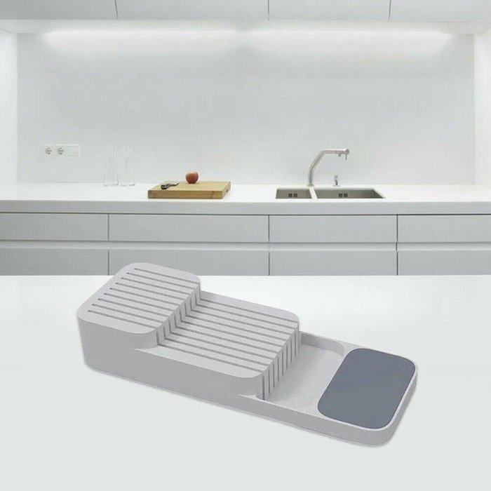 Gaveta Faqueiro Porta Faca Separação Organizador Caixa Cozinha Sebo Talheres Armazenar facas afiadas nas gavetas pode ser perigoso e também pode danificar as lâminas caras. Este organizador de facas de 2 camadas é a solução perfeita proporcionando armazenamento seguro e fácil acesso a uma variedade de facas de cozinha.