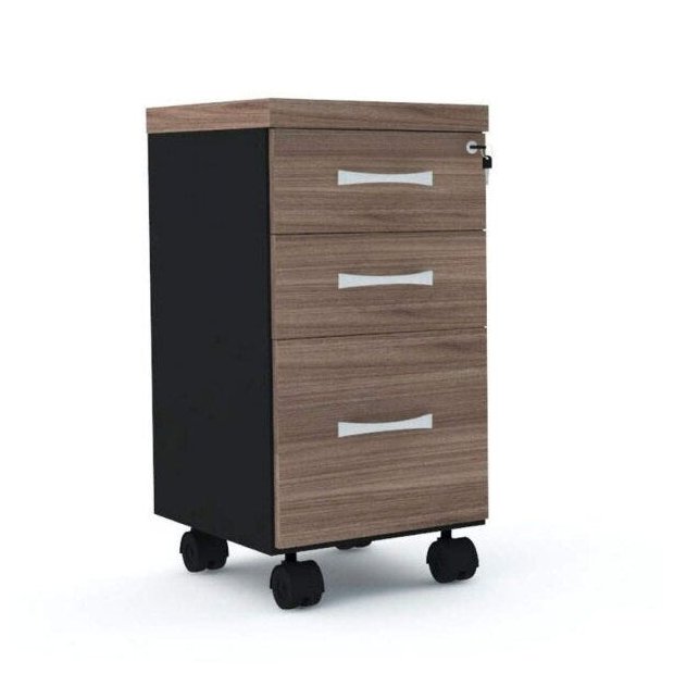 Gaveteiro 3 Gavetas com Rodízios Pe40 Pandin Móveis Walnut/Preto