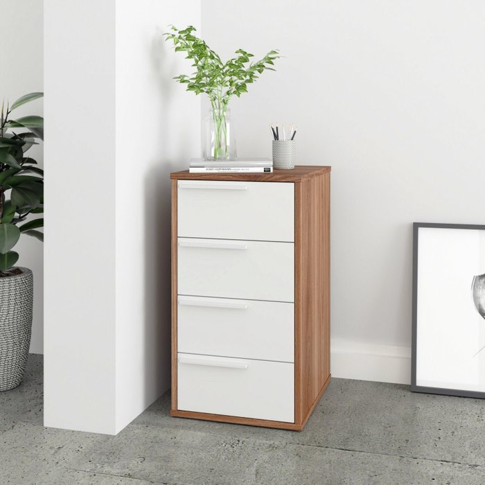 Gaveteiro 4 Gavetas BHO 37 Office BRV Móveis Castanho/Branco