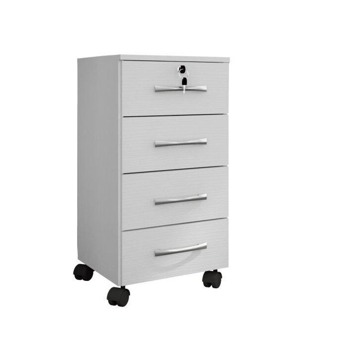 Gaveteiro 4 Gavetas com Chave Euro Espresso Móveis Branco/Amarelo