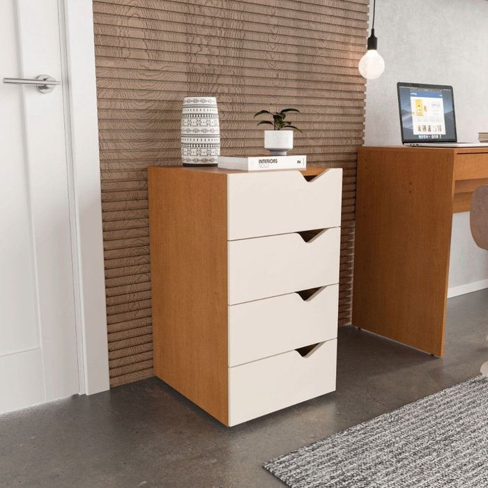 Gaveteiro 4 Gavetas Porto Creme e Freijó Politorno